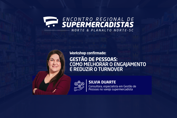 “Gestão de Pessoas: como melhorar o engajamento e reduzir o turnover” é um dos temas confirmados na programação do Encontro Regional de Supermercadistas das regiões Norte e Planalto Norte, em Joinville. O workshop será ministrado por Silvia Duarte, Consultora e especialista em Gestão de Pessoas no varejo supermercadista, com assuntos voltados para líderes e profissionais de Recursos Humanos que atuam no segmento.