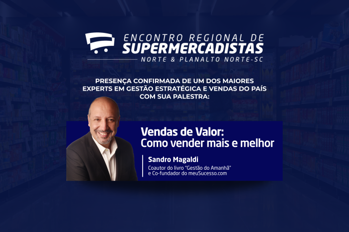 “Vendas de valor: como vender mais e melhor” é o tema que Sandro Magaldi, um dos maiores especialistas do país em gestão estratégica e vendas, irá apresentar no Encontro Regional de Supermercadistas em Joinville. O evento, promovido pela Associação Catarinense de Supermercados (Acats), será realizado no dia 28 de agosto (quinta-feira), no Centro de Convenções e Exposições Expoville, reunindo empresários e profissionais do varejo alimentar das regiões Norte e Planalto Norte de Santa Catarina.